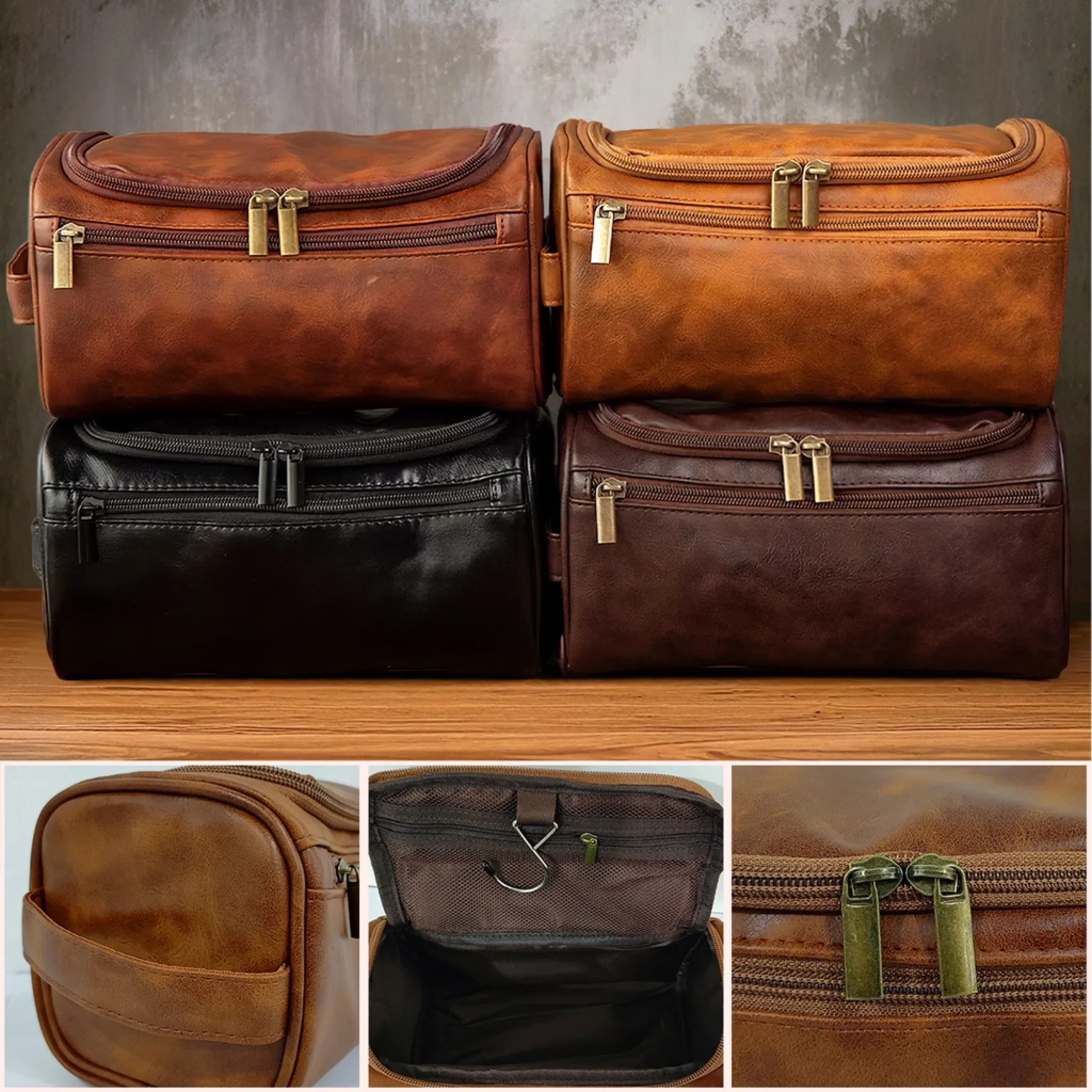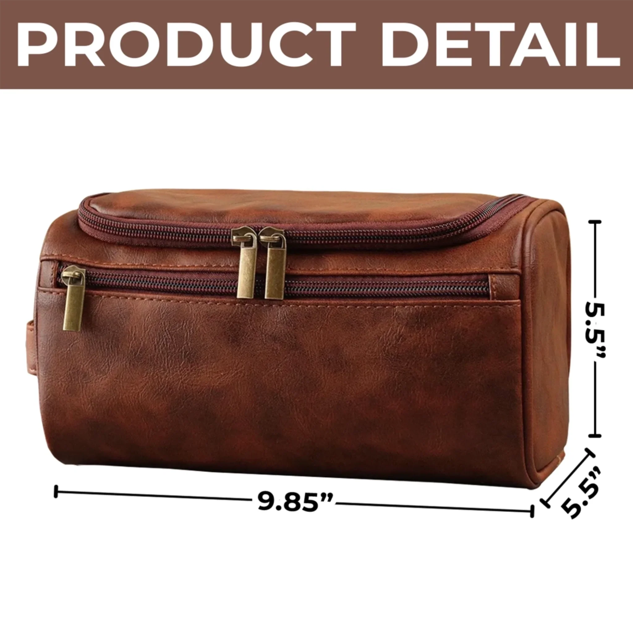 Custom Engraved Leather Toiletry Bag - Personalized Birthday Gift for Dad, Brother, Grandpa, Husband - For the Man Who Is Always on the Go