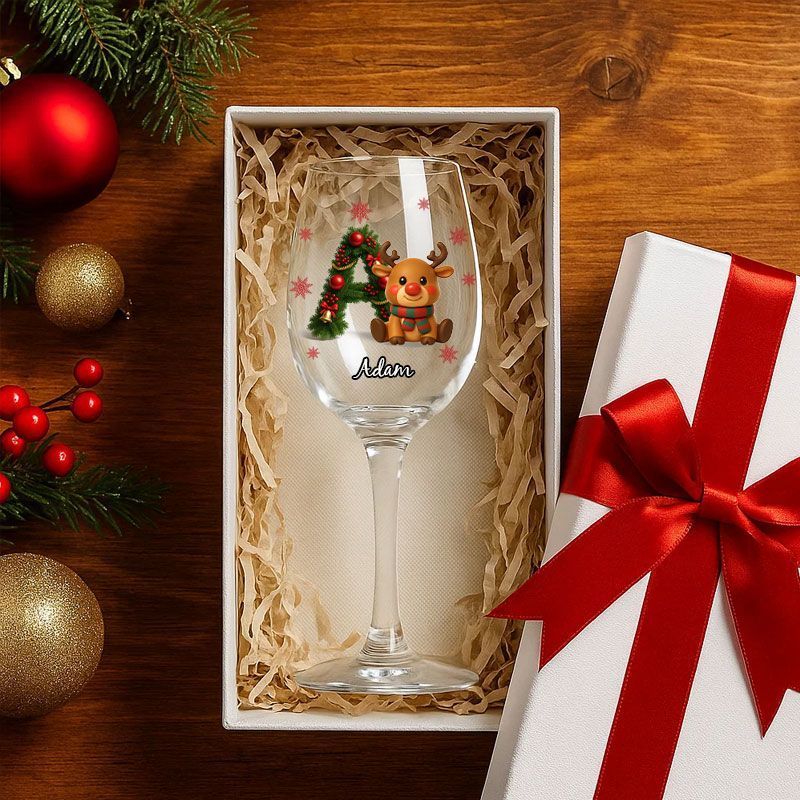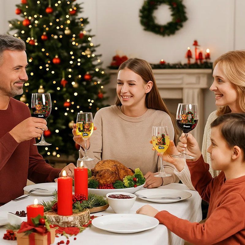 Merry Christmas - Personalised Elk Family Wine Glass