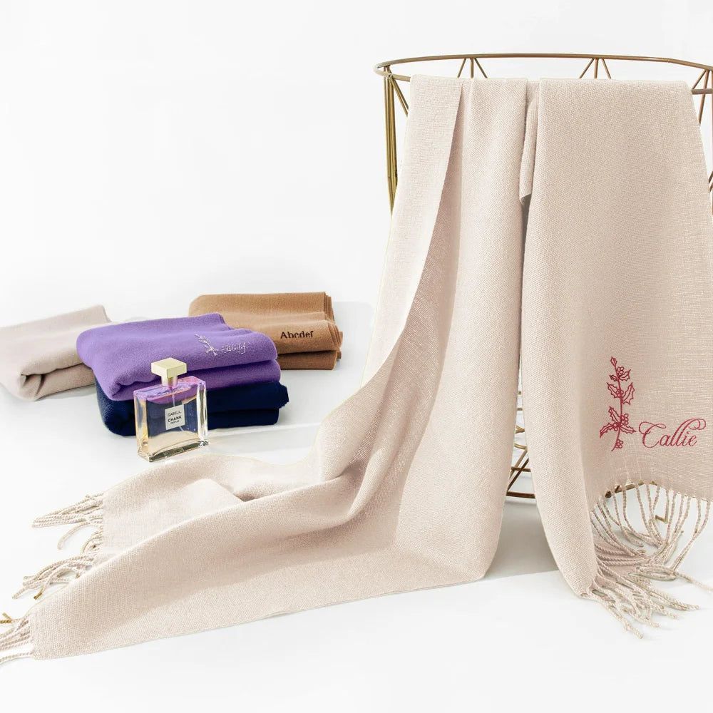 Personalized Super Soft Warm Scarf with Embroidered Birth Flower and Text Fashion Accessory Birthday Christmas Gift for Couple Family